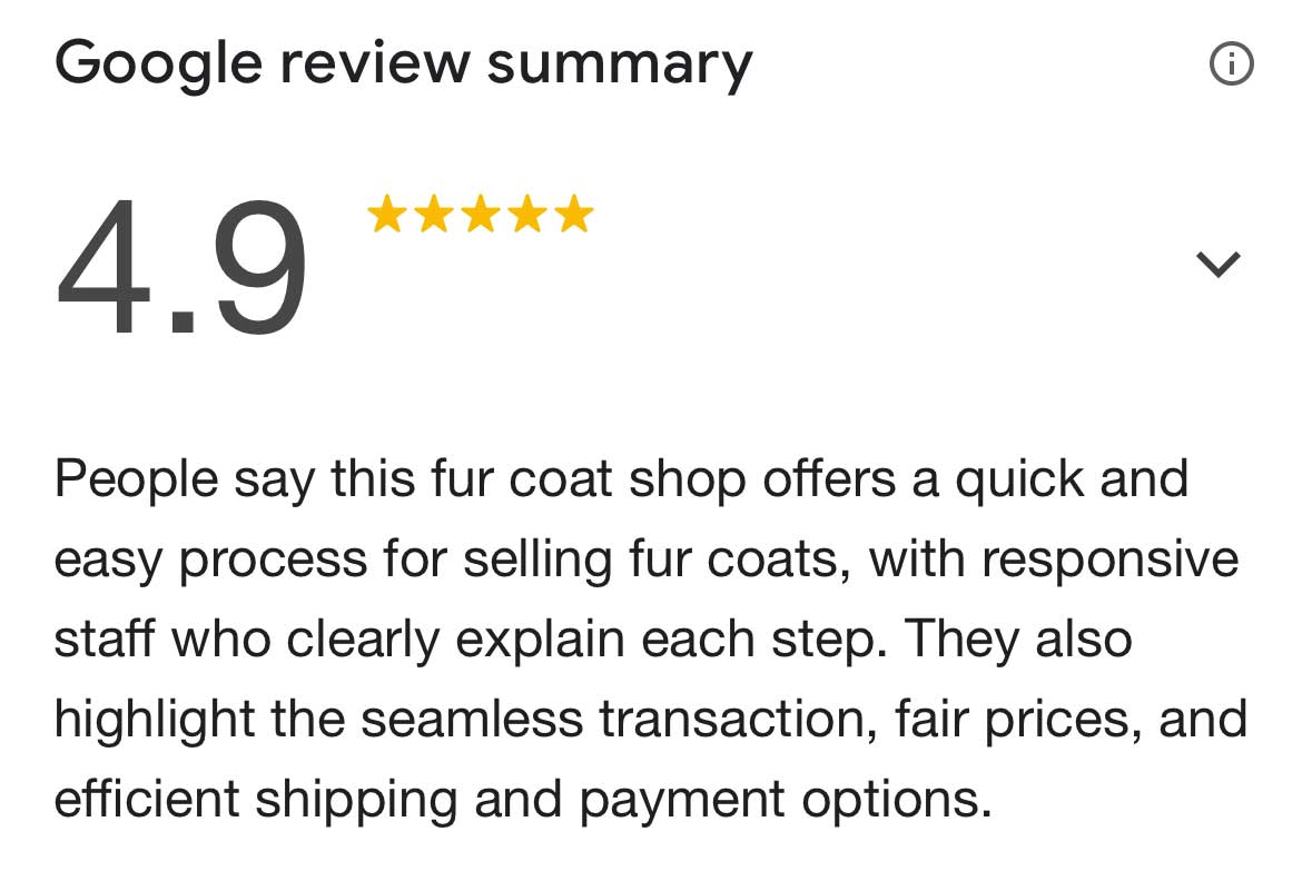Posted on Joseph BarlikMarch 23, 2026Trustindex verifies that the original source of the review is Google. Very professional..Posted on Dee SMarch 21, 2026Trustindex verifies that the original source of the review is Google. Extremely easy and very nice to deal withPosted on Douglas KuszajewskiMarch 19, 2026Trustindex verifies that the original source of the review is Google. Quick and painless transaction to sell a couple furs that were no longer being used.Posted on Jennifer ContilianoMarch 18, 2026Trustindex verifies that the original source of the review is Google. Working with Mano Schwartz was seamless and pleasure. I recommend selling furs to them.Posted on Brigitte CarisMarch 17, 2026Trustindex verifies that the original source of the review is Google. I has a great and very professional experience with Mano Swartz .I highly recommend them.Posted on Dawn M FenderMarch 16, 2026Trustindex verifies that the original source of the review is Google. I had a great experience selling a vintage fur to Mano Swartz. Super easy process, good communication, and fast turnaround. Thank you!Posted on Doug VolkmeierMarch 16, 2026Trustindex verifies that the original source of the review is Google. If you are thinking about selling your fur this is the way to get it done Richard was great to work with, they supply you with a FedEx label and pay the shipping costs I highly recommendPosted on Libby ZoppaMarch 14, 2026Trustindex verifies that the original source of the review is Google. I sent my photos, they sent an offer rapidly, I got super busy and realized my thirty days to send had expired. I reached back out and they were so kind to keep their offer. I printed their label, filled a box and off it went! Just a week later they sent me money! Great experience, super easy to communicate and very easy process.Load moreVerified by TrustindexTrustindex verified badge is the Universal Symbol of Trust. Only the greatest companies can get the verified badge who has a review score above 4.5, based on customer reviews over the past 12 months. Read more